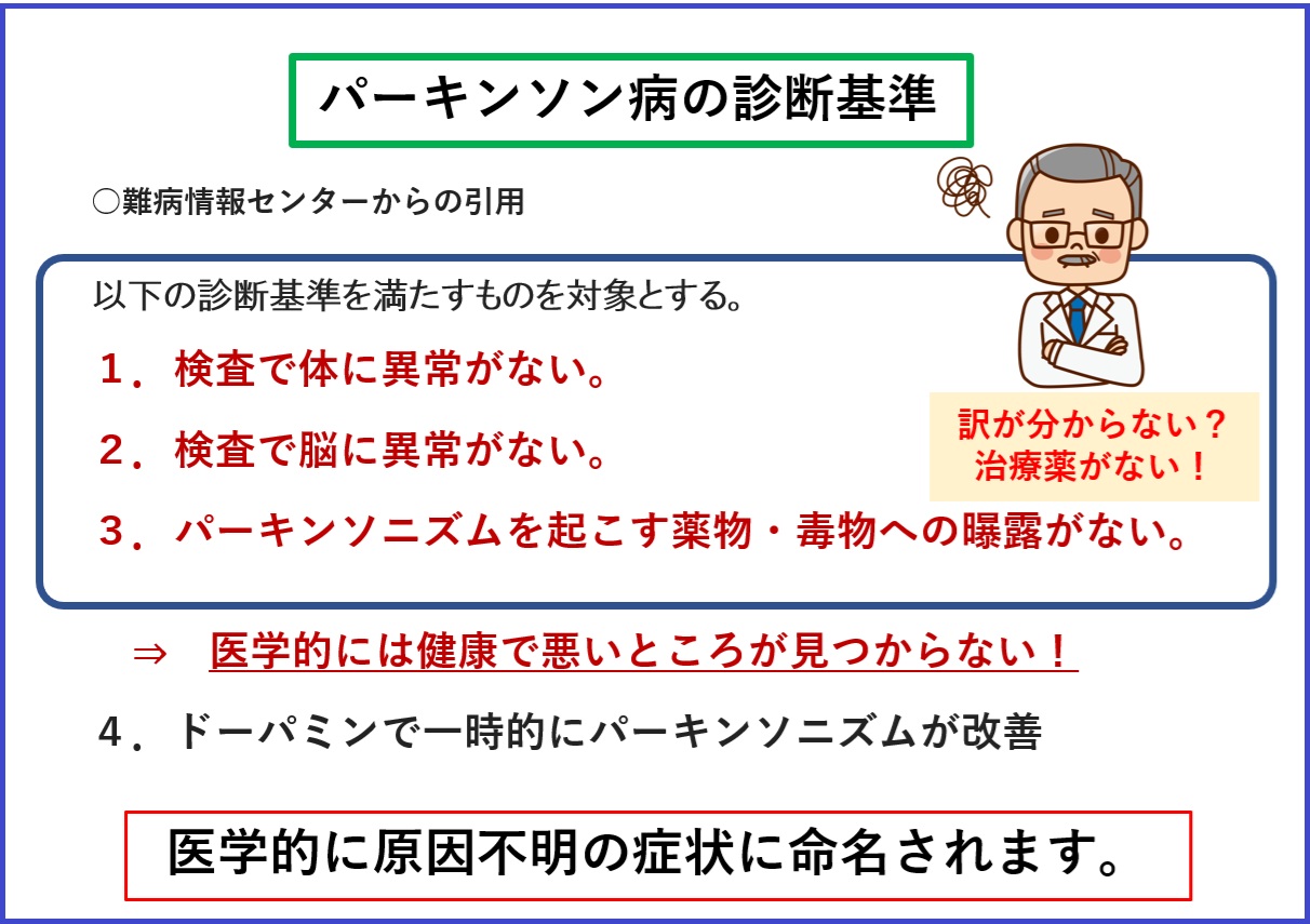 『医学的には問題点が見つからない』のがパーキンソン病です。